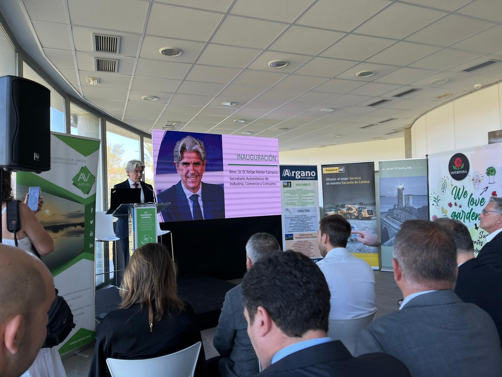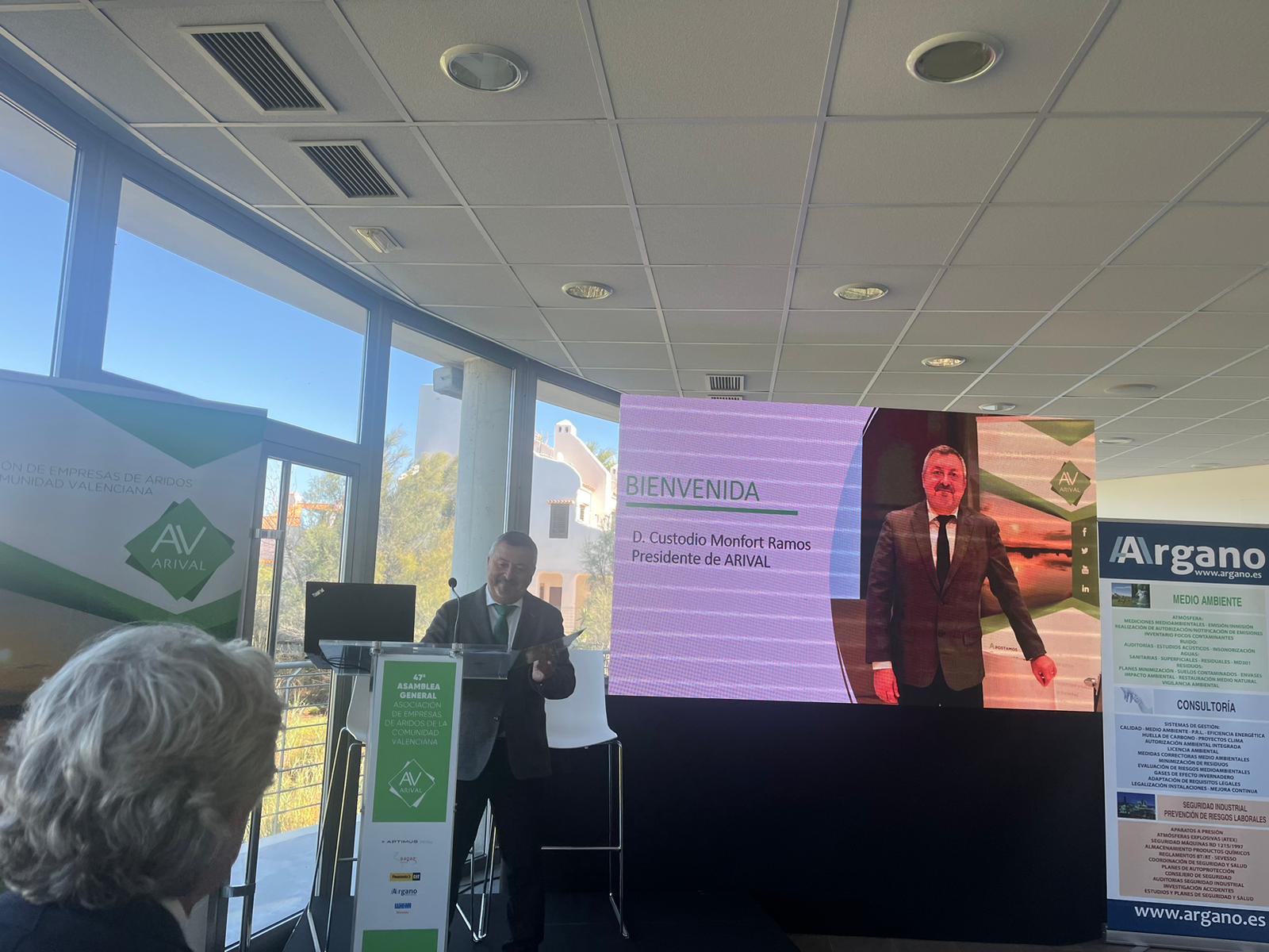 El viernes 22 de septiembre se ha celebrado, en Torreblanca, Castellón, la Asamblea General de Arival con las intervenciones de su presidente, Custodio Monfort, a su vez presidente de la Federación de Áridos – FdA; de Felipe Ferrer, secretario autonómico de Industria, Comercio y Consumo de la Generalitat Valenciana y de Ana Barella, gerente de Arival.